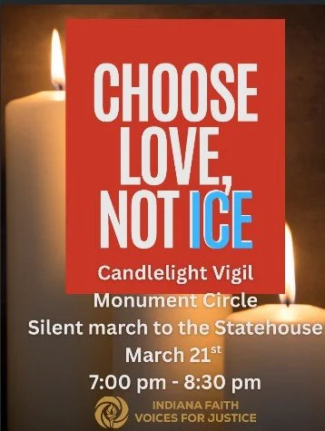 Join Indiana Faith Voices for Justice for a Candlelight Vigil and Silent March on March 21 from 7:00–8:30 PM.