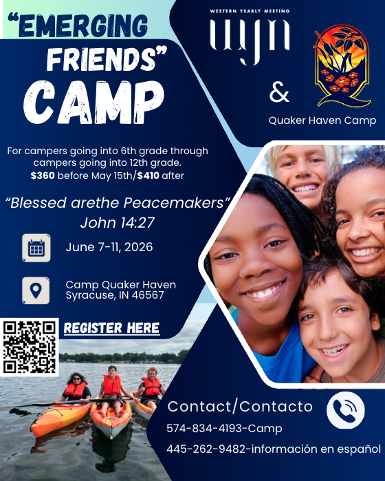 For the Western Yearly Meeting, a regional Quaker body serving meetings and churches in Indiana and Illinois, becoming peace makers means developing the skills and dispositions to bring God's Kindom here on Earth. We know that the world God wants for us requires the end of interpersonal and state-based violence, harmony with creation, and a right sharing of resources. The peace we're learning to build is an active peace that includes the presence of justice, not simply the absence of conflict.